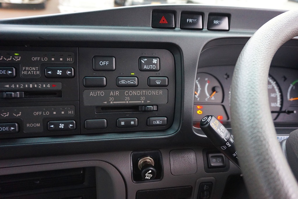 オートAC PS ABS 電格ミラー/左ドアミラー電動角度調整 排気ブレーキ 集中ドアロック ETC バックモニター 純正オーディオAM/FM/CD/MD 運転席肘掛け フォグランプ デジタル時計 消火器1個 マイク