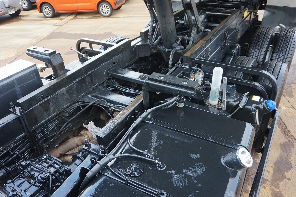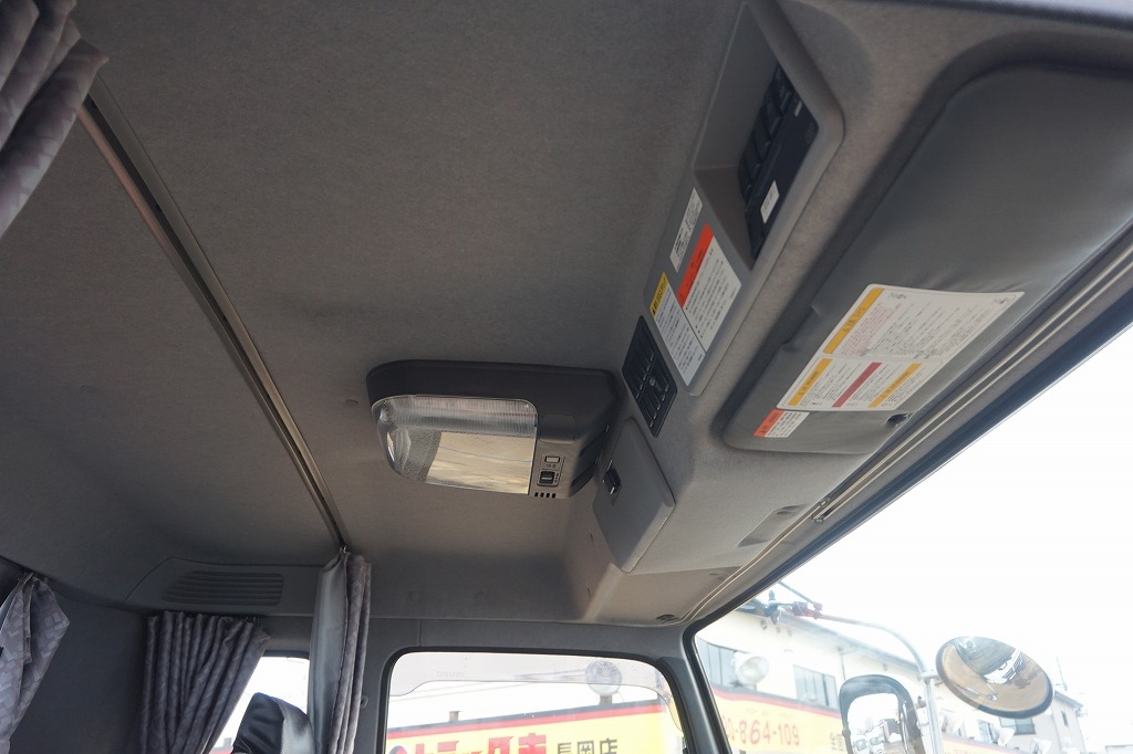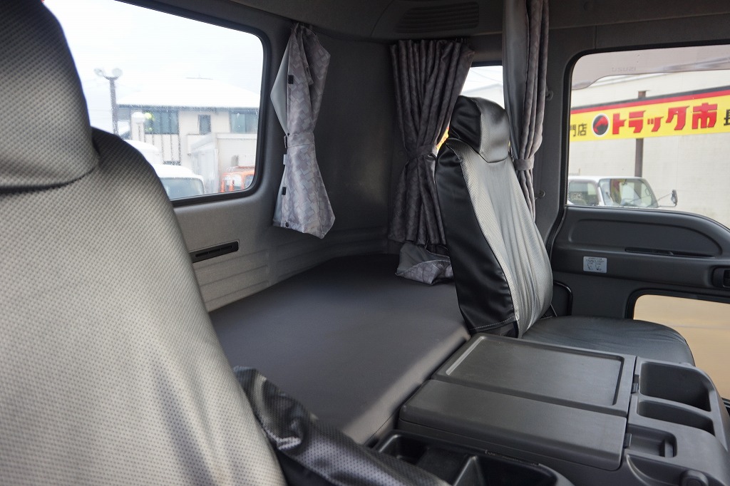 オートAC PS PW SRS ABS キーレス 左電格ミラー/ヒーター/ワイパー エアサスシート/肘掛け AM/FM ETC アドブルー ターボ 排気ブレーキ デフロック 坂道発進補助装置 フォグランプ 室内蛍光灯/カーテン シートカバー付 社外テールランプ タイヤ止め2個 燃料タンク290L 左シャシFステンレス工具箱 ステンレス製Rフェンダーカバー 消火器1個 メッキホイールカバー