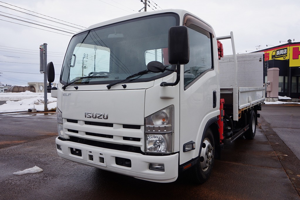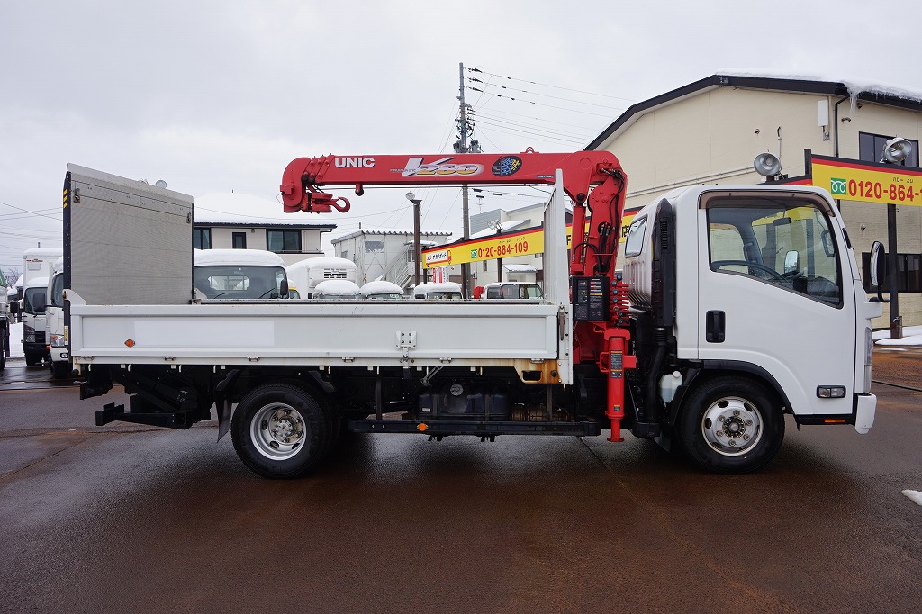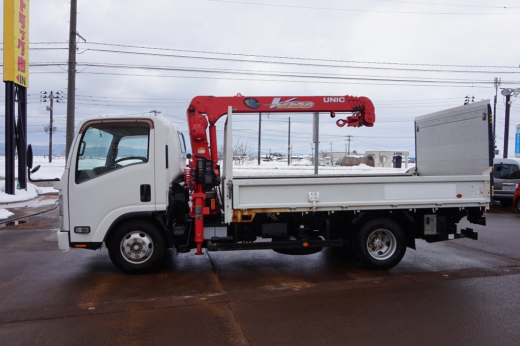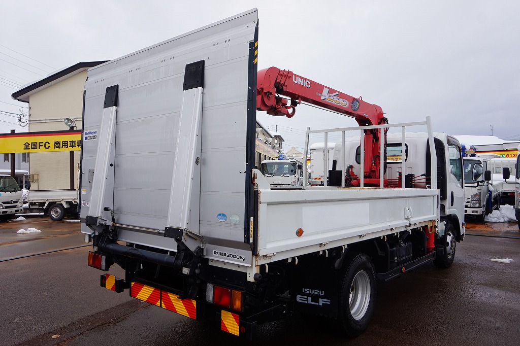 【年次点検済】エルフ 3t 高床 ワイドロング ユニック4段クレーン/マルチゲート付