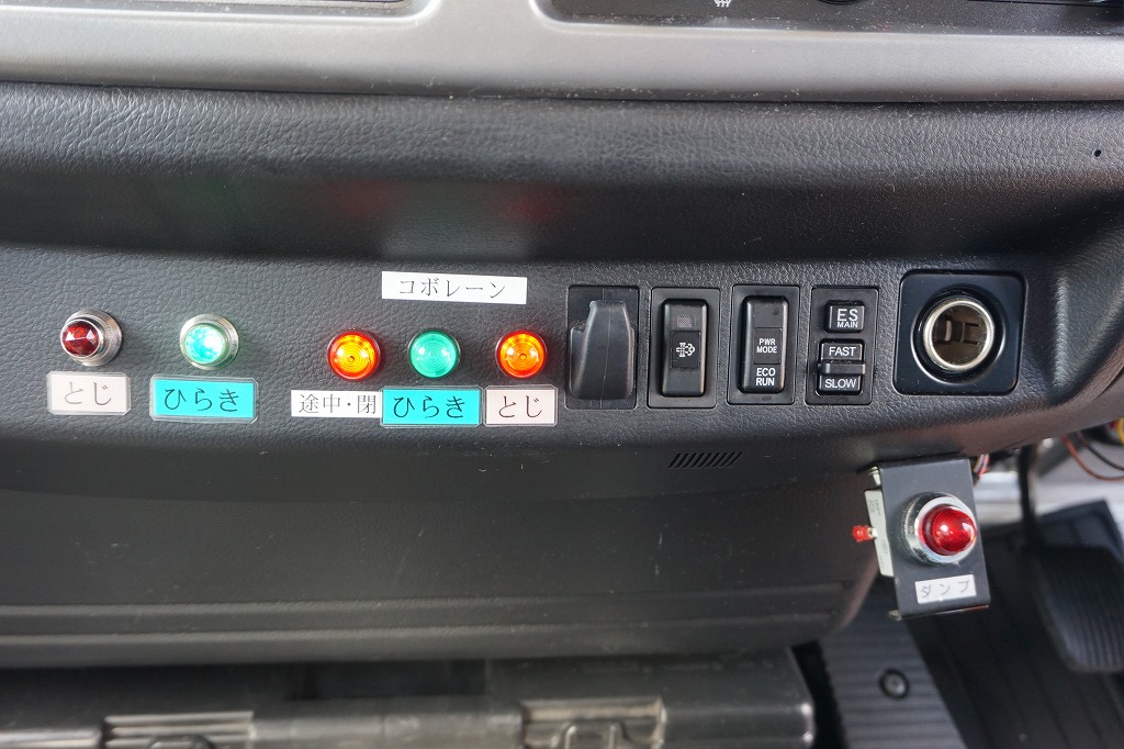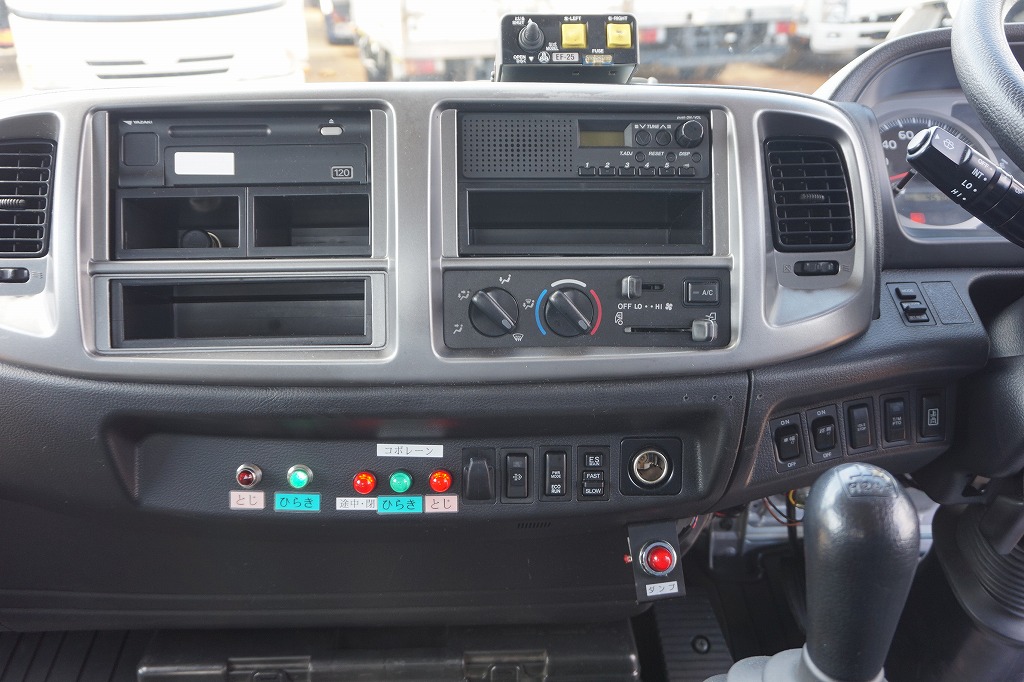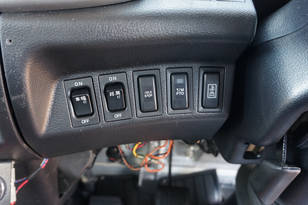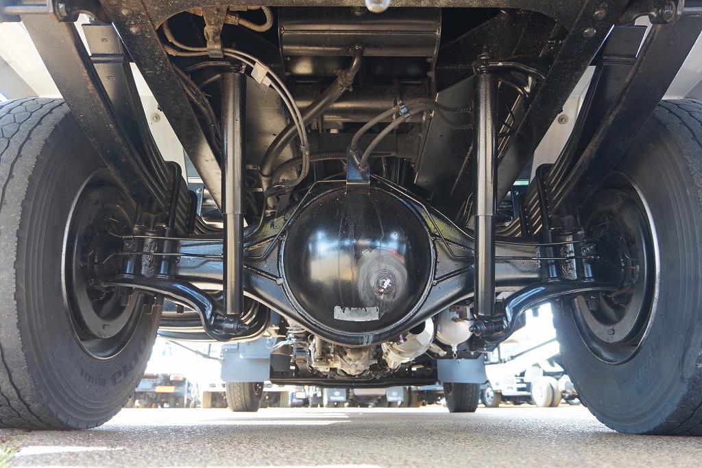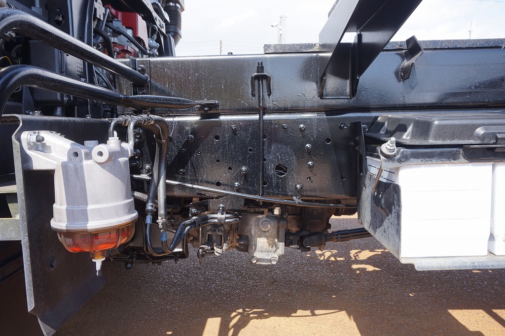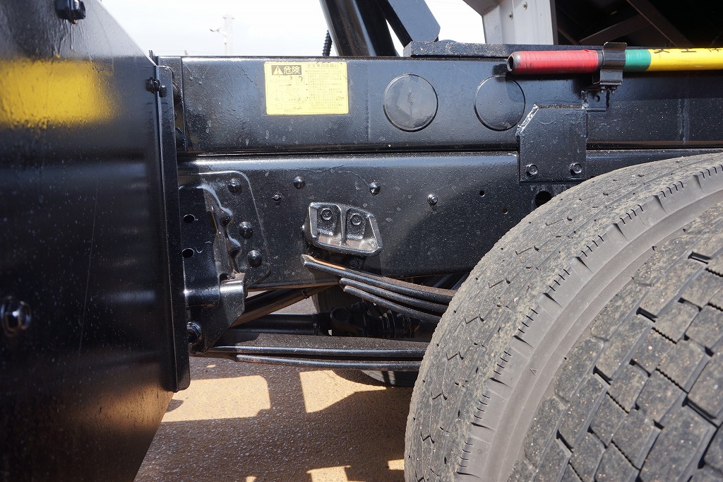 AC PS PW SRS ABS 集中ドアロック 左電格ミラー/ヒーター/左右電動角度調整 AMラジオ タコグラフ ターボ 排気ブレーキ 坂道発進補助装置 アイドリングストップ フォグランプ 室内蛍光灯 燃料タンク100L 右シャシ中央工具箱 タイヤ止め2個 ※スペアタイヤ欠