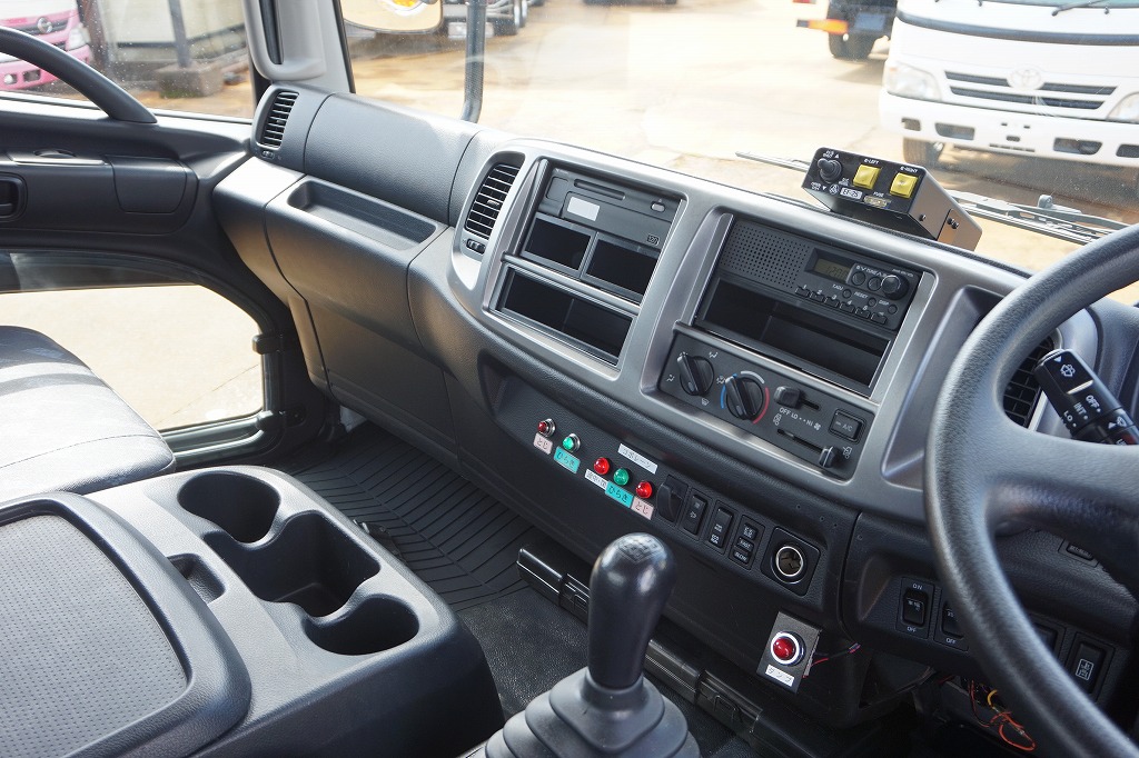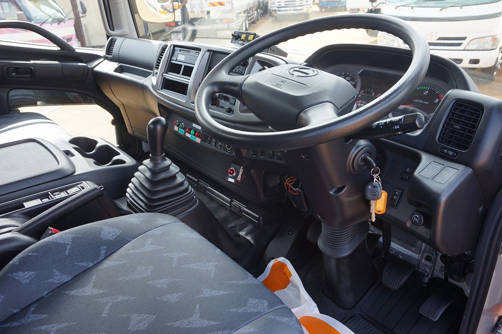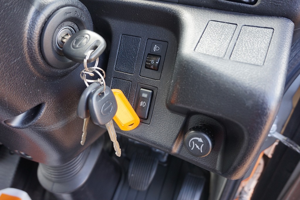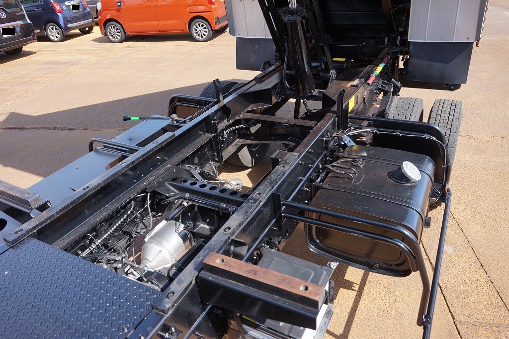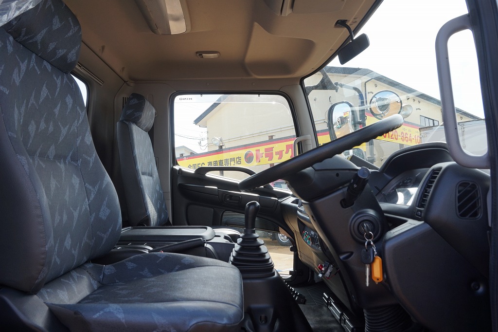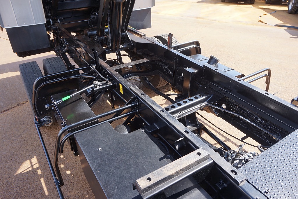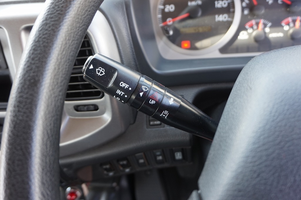 AC PS PW SRS ABS 集中ドアロック 左電格ミラー/ヒーター/左右電動角度調整 AMラジオ タコグラフ ターボ 排気ブレーキ 坂道発進補助装置 アイドリングストップ フォグランプ 室内蛍光灯 燃料タンク100L 右シャシ中央工具箱 タイヤ止め2個 ※スペアタイヤ欠
