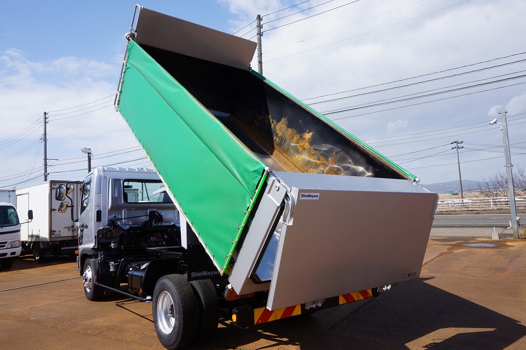荷台内寸:400×201×90 新明和/DR4-17S 土砂禁 天蓋自動シート付 R扉下開き 床ステンレス張り 左右プロテクターはしご付