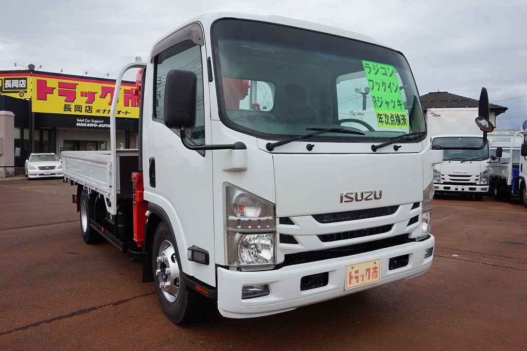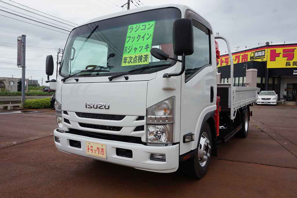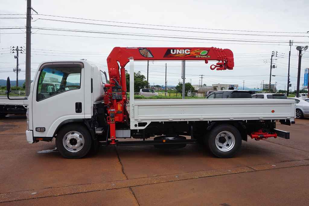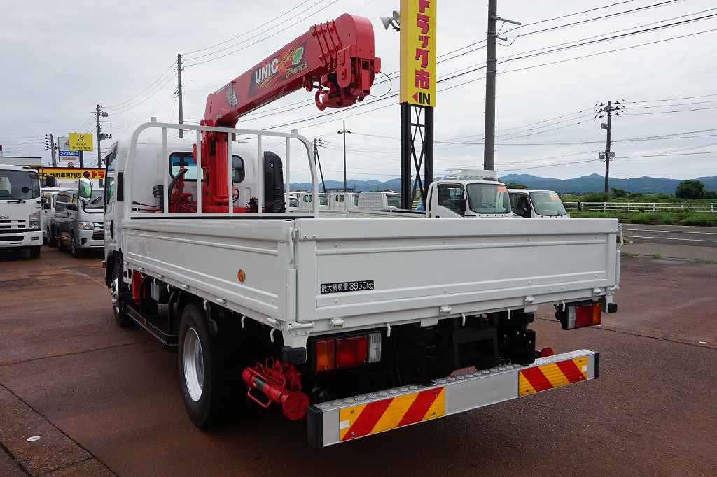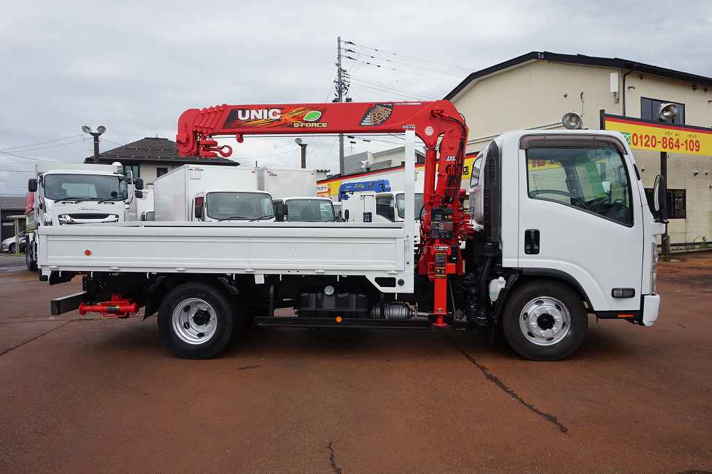 【年次点検済】エルフ 3.65t 高床 ワイドロング ユニック5段クレーン付