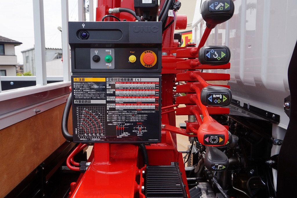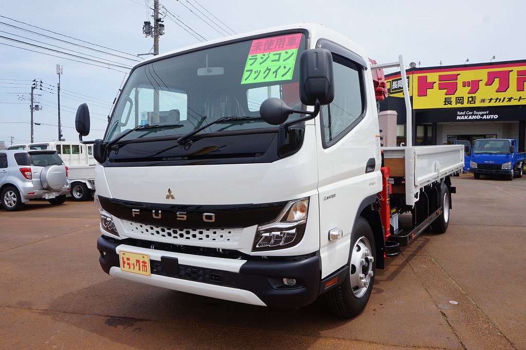 キャンター 3.3t 高床 ワイド超ロング ユニック5段クレーン付 未使用車