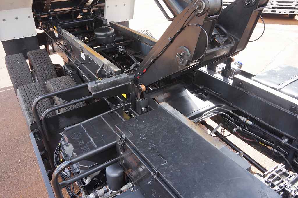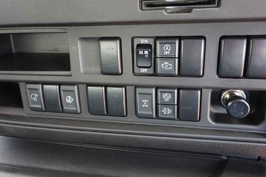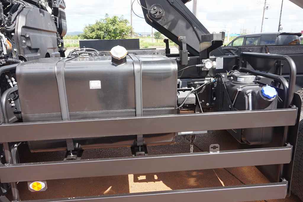オートAC PS PW SRS ABS キーレス 左電格ミラー/ヒーター/ワイパー エアサスシート/肘掛け AM/FM ETC2.0 デジタコ アドブルー ターボ 排気ブレーキ E/Gリターダー デフロック 坂道発進補助装置 アイドリングストップ フォグランプ トラクションコントロール 室内LED灯/カーテン 燃料タンク290L 右シャシF工具箱 社外テールランプ 消火器1個 字光式ナンバープレート機材