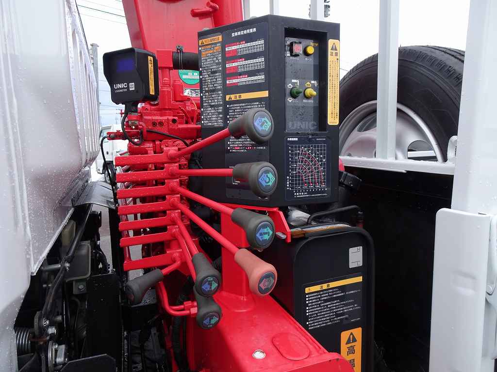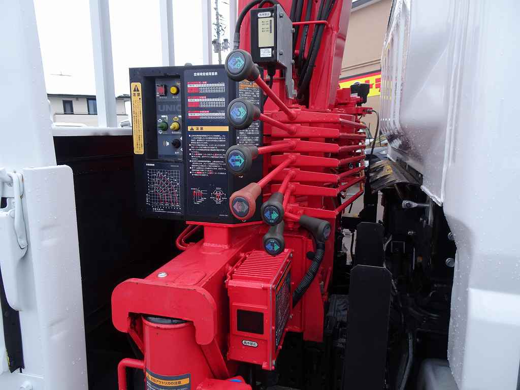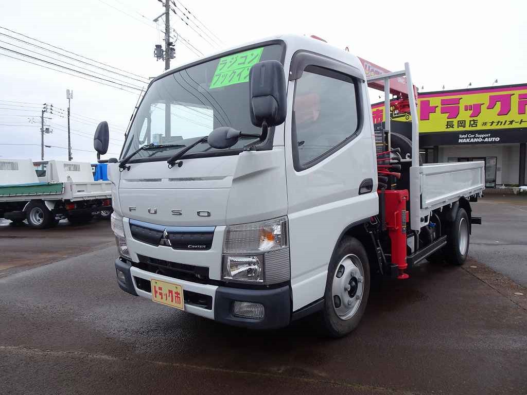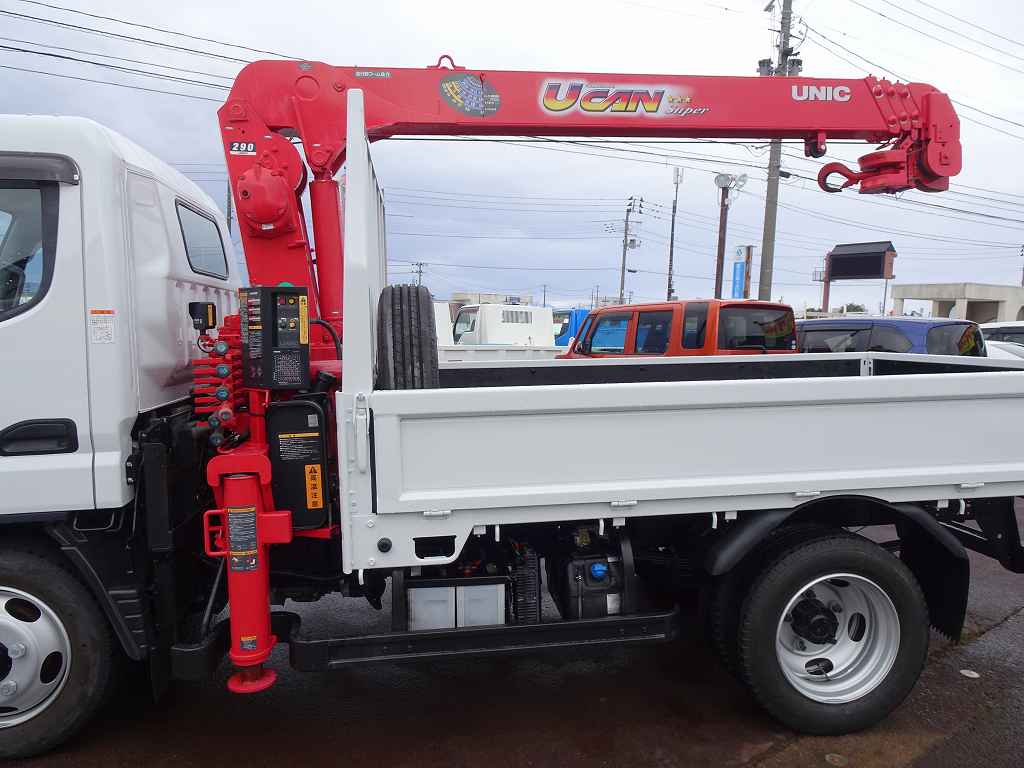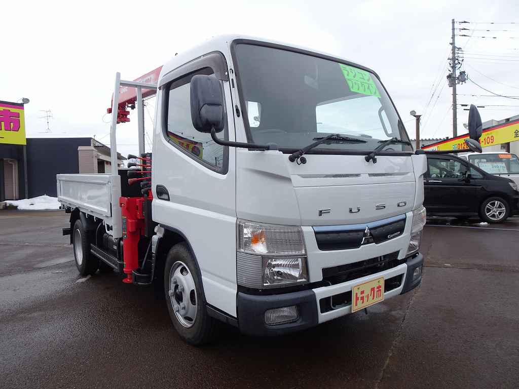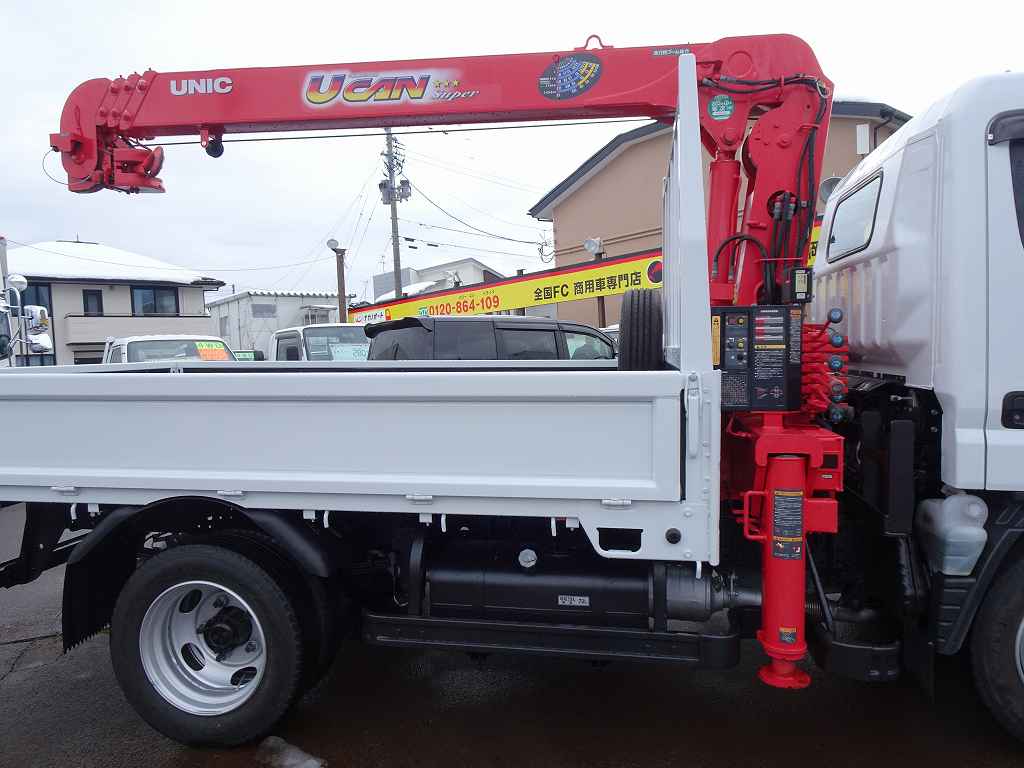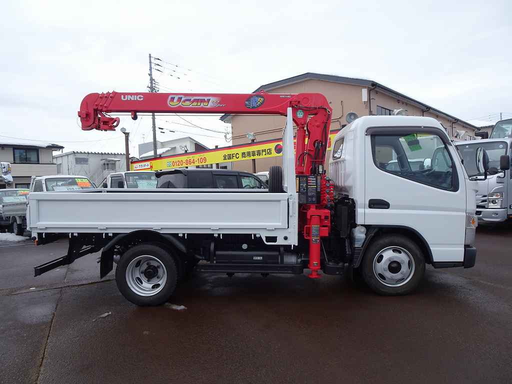 【年次点検済】キャンター 3t 全低床 標準セミロング ユニック4段クレーン付