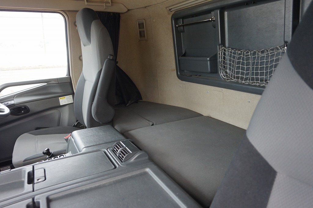 オートAC PS PW SRS ABS 集中ドアロック 左電格ミラー/ヒーター/ワイパー/左右電動電動角度調整 エアサスシート/肘掛け AM/FM ETC バックモニター ドライブレコーダー タコグラフ アドブルー ターボ 排気ブレーキ T/Mリターダー デフロック 坂道発進補助装置 フォグランプ 室内蛍光灯/カーテン アルミ製燃料タンク300L 右シャシF工具箱2個