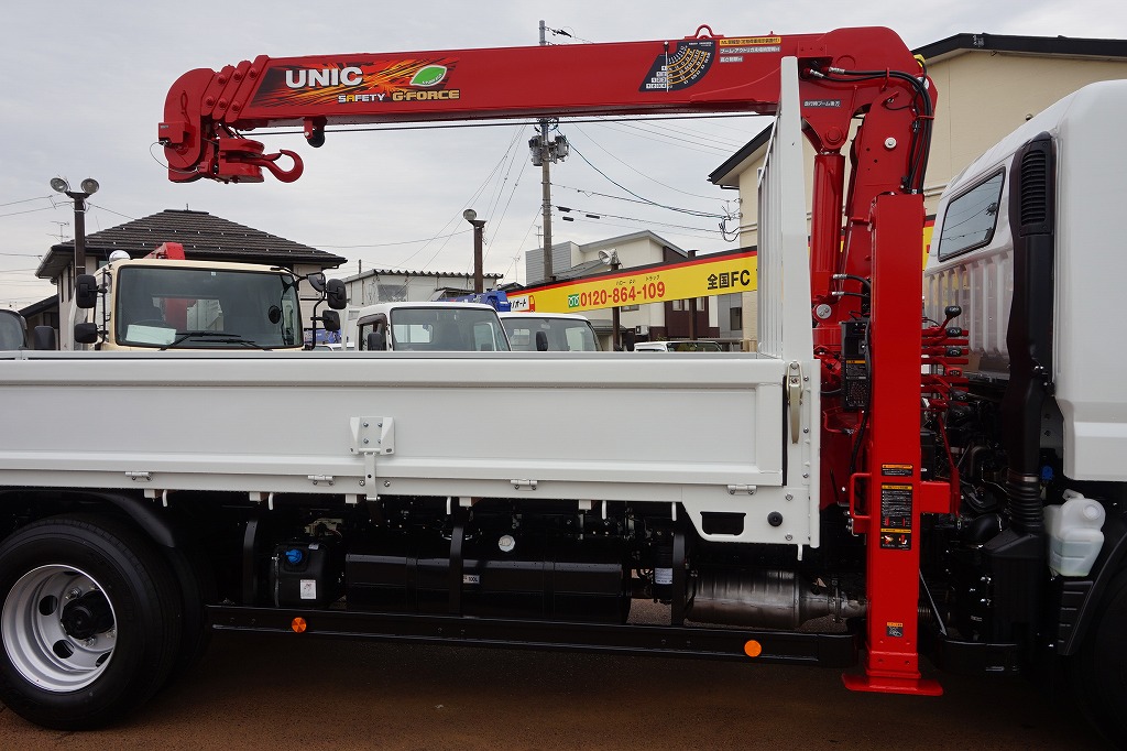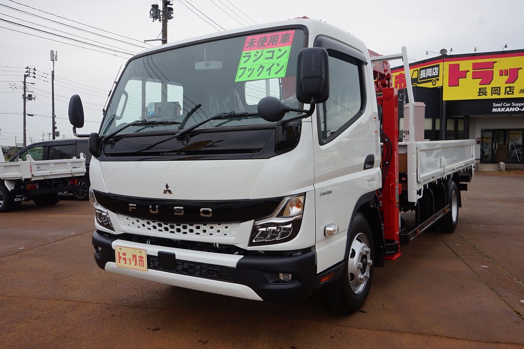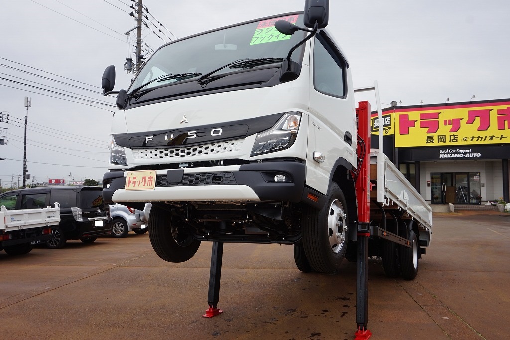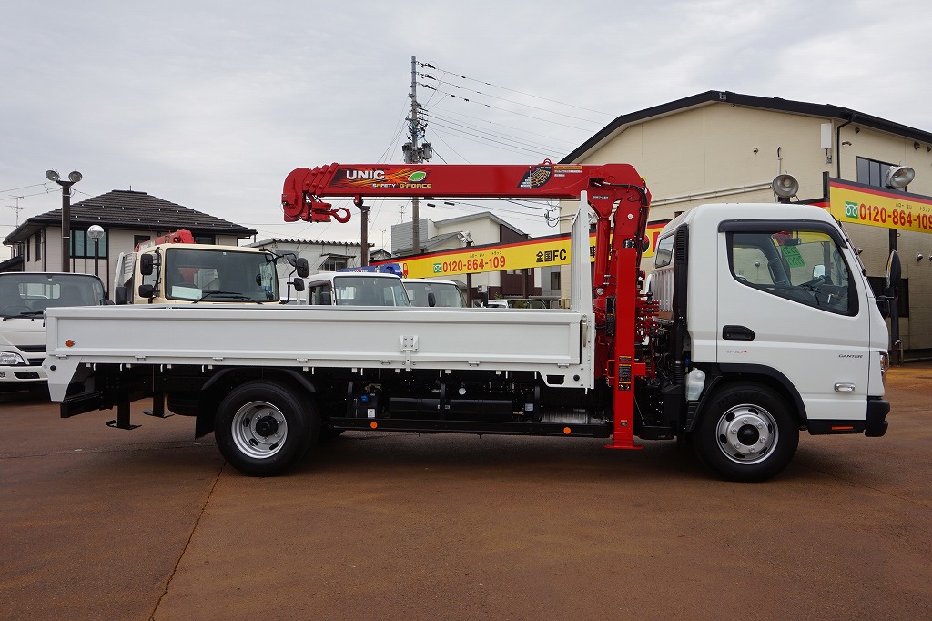 キャンター 3.1t 高床 ワイド超ロング ユニック4段セルフクレーン付 未使用車