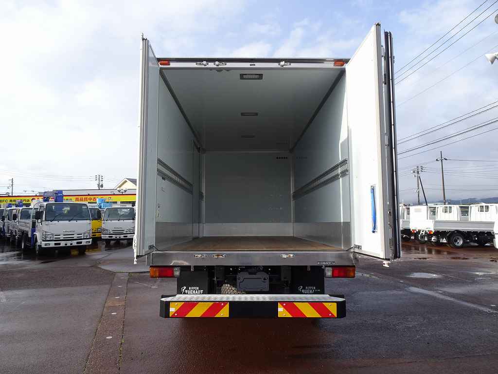 荷台内寸:449×207×197 日本フルハーフ/GAE4 R3枚観音扉/90度ストッパー付 箱厚み6cm 左サイドスライドドア ラッシングレール1段(90cm) 箱F/R換気口1対 荷室LED灯3個