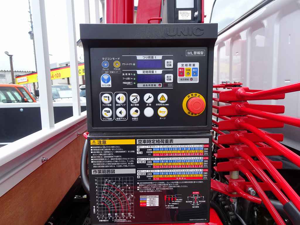 キャンター 3.3t 高床 ワイド超ロング ユニック4段クレーン付 未使用車