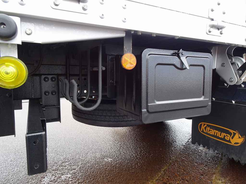 4WD(切替式) AC PS PW SRS ABS 集中ドアロック 左電格ミラー AM/FM ETC バックモニター ドライブレコーダー ターボ 排気ブレーキ 坂道発進補助装置 車線逸脱警報装置 衝突被害軽減ブレーキ フォグランプ トラクションコントロール 電動パーキングブレーキ 室内LED灯 ハイルーフ 燃料タンク100L タイヤ止め2個 ステンレス製リアフェンダーカバー 左右シャシリア3連タイヤチェーンフック 右シャシリア工具箱 純正エアディフレクター