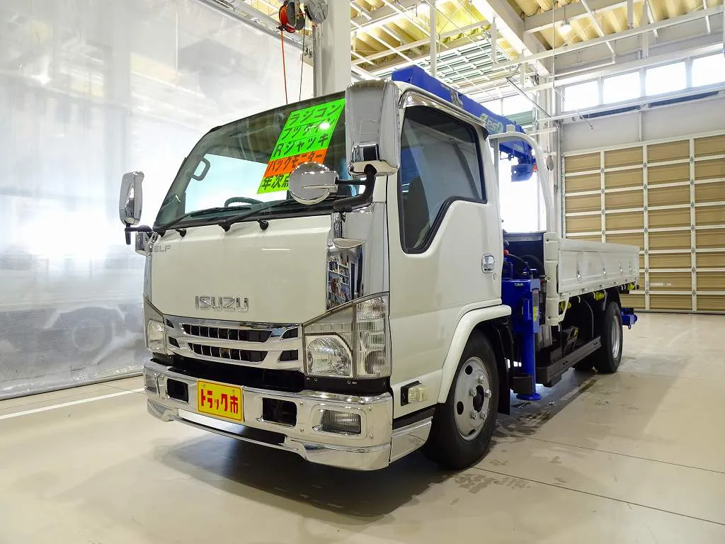 【年次点検済】エルフ 3t 高床 標準ロング タダノ4段クレーン付